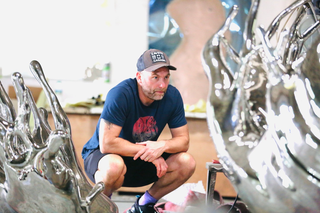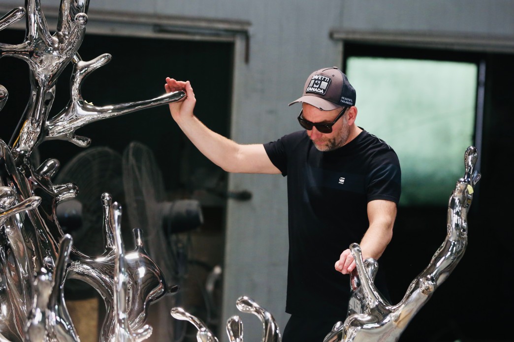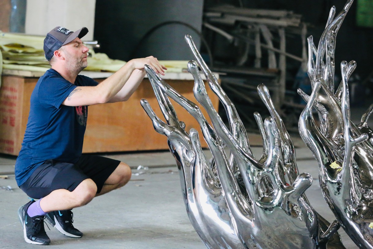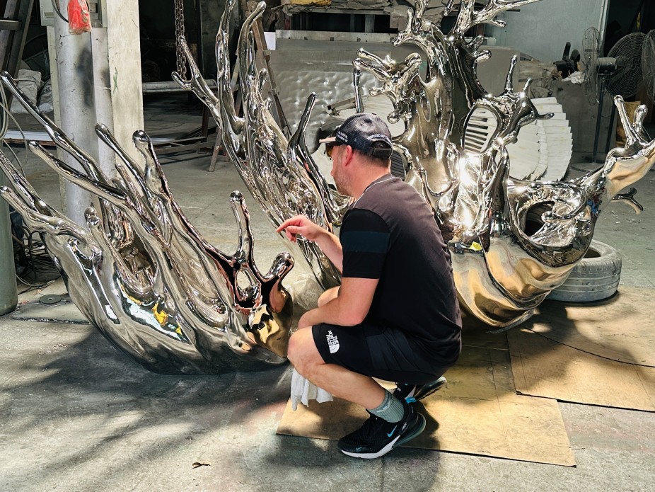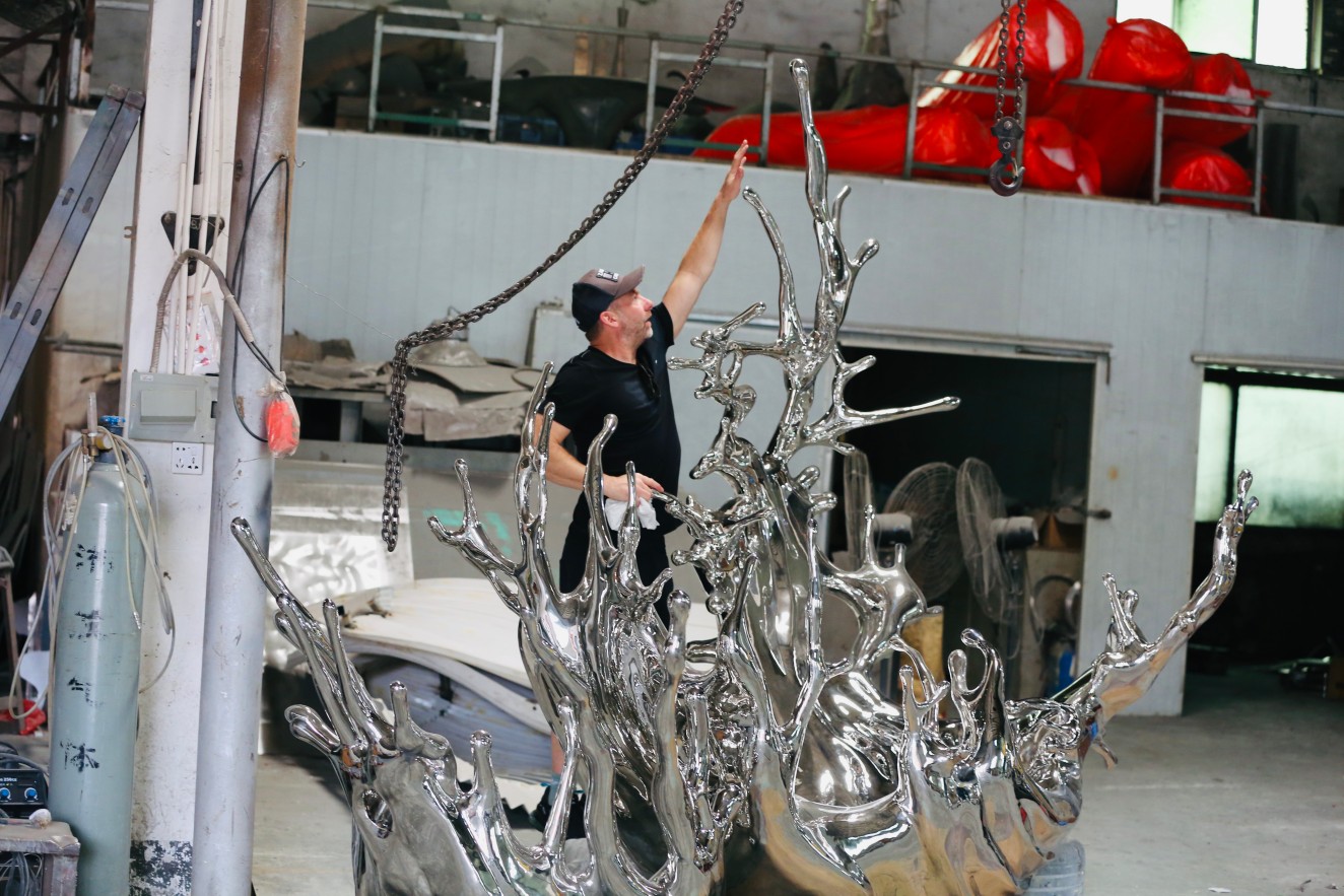 With all my work, I aim to trigger one of three responses: to make viewers think ‘How did he do that?’, to inspire them to touch the artwork, or to encourage movement around the piece for different perspectives. ‘Kinetic Drop‘ achieves all three—its complex form raises questions about its creation, the smooth surface invites touch, and as you move around it, the reflections continuously transform.